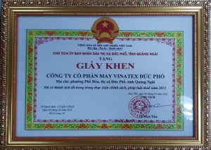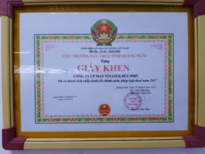 Trong thời gian qua công ty luôn thực hiện tốt các chính sách thuế, bảo hiểm xã hội theo quy định, công ty được các cơ quan chức năng tặng giấy khen, bằng khen.